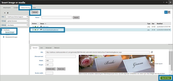 Choose where in the Media library you would like the image to be stored (i.e. Site Media or in a Banner Images Folder)
