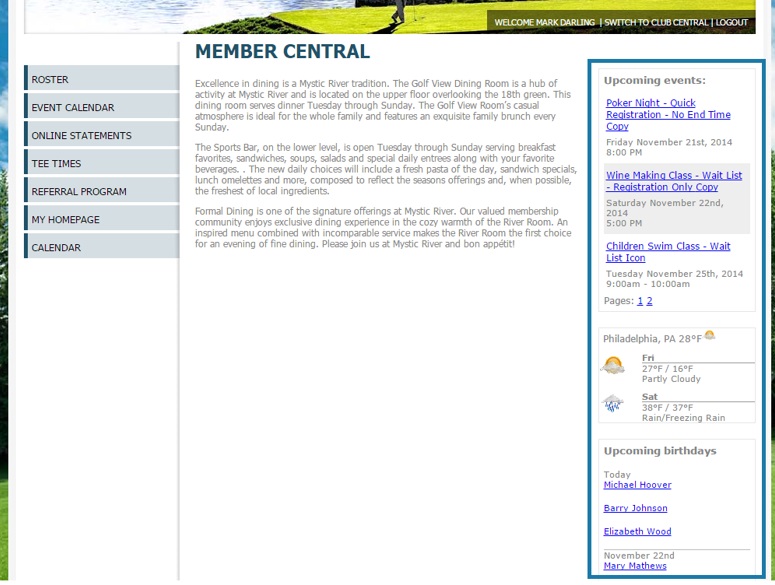 Upcoming Birthdays: Displays Upcoming Birthdays (Note: members who have chosen to hide their Birthdays will not display in this screen.)