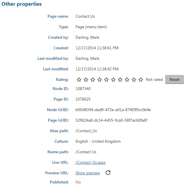 Published:  Indicates whether or not the page has been published. If it shows as Yes (Green) that means the page has been published at some point in the past. If it shows as No (Red) that means the page has never been published and is not Live