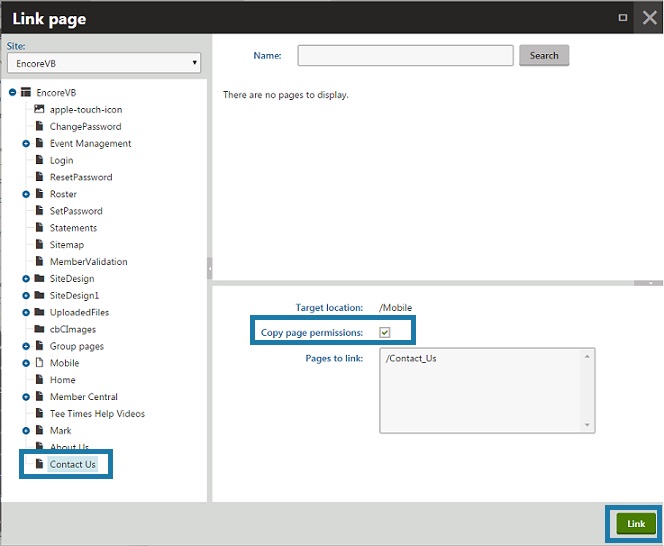 Next, select the page that should be linked to and select ‘Link’. Additionally, if there are any child pages attached to the page to be linked, they can also be selected by clicking the checkbox, ‘Link also all child documents’.
