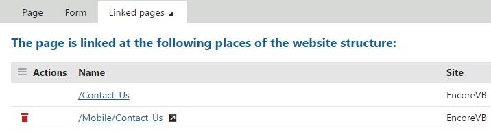 This section displays a list of other page aliases (URLs) under which the page can be accessed. One page can have an unlimited number of aliases (URLs).