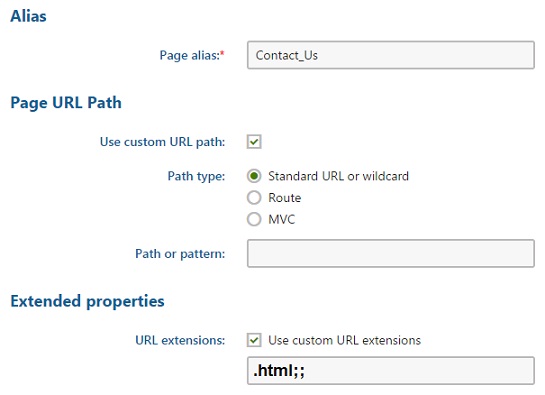 Example: entering .html;; for a page with a URL path set to /Contact_Us will allow the document to be accessed through all of the URLs below: