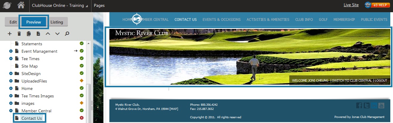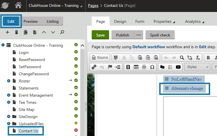 3. In the Content Tree, select the Page that needs to be edited (i.e. Contact Us)