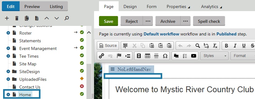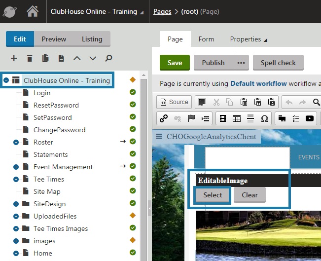 3. Click on the Root Page in the content tree - this should have your club name on it.