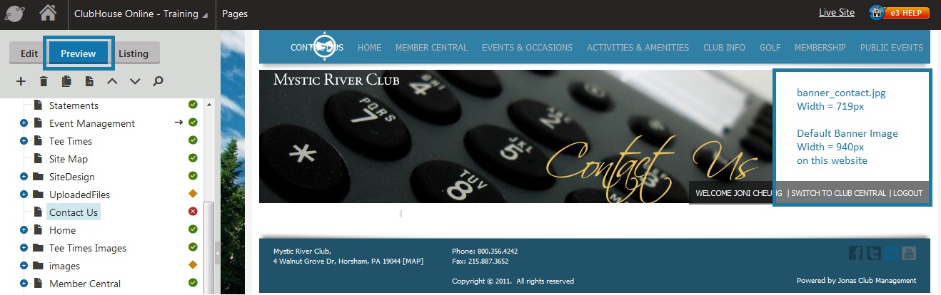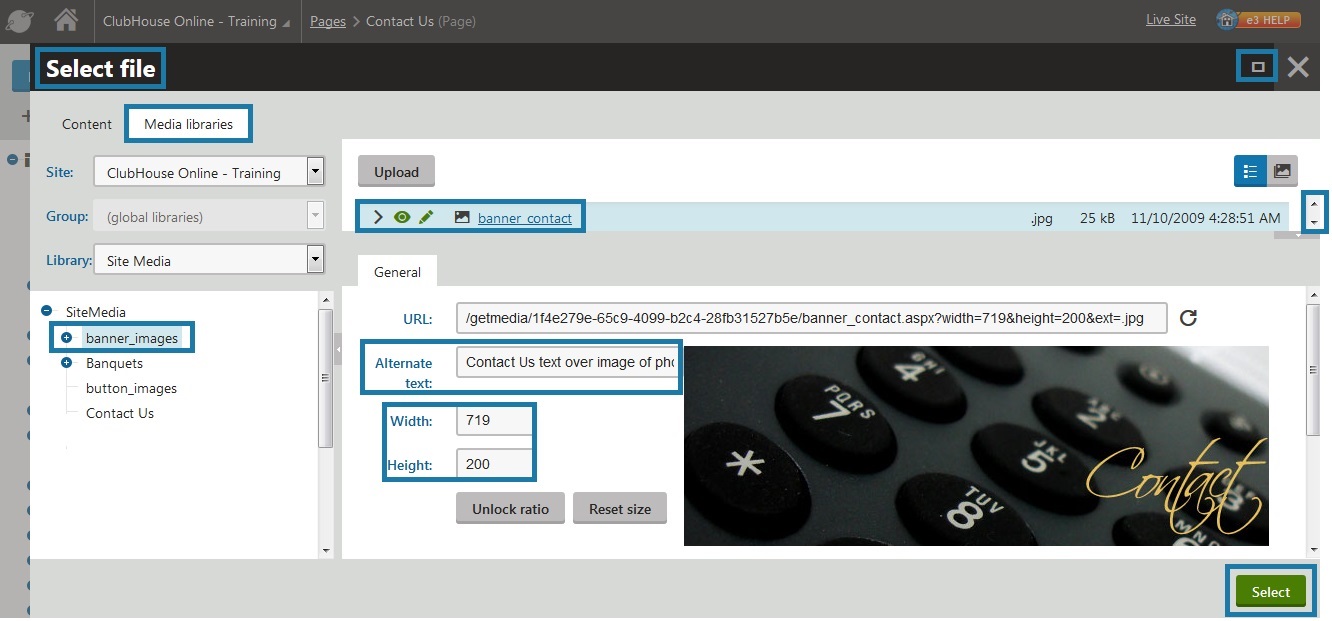 6. Select new image (i.e. banner_contact.jpg) or Upload new photo