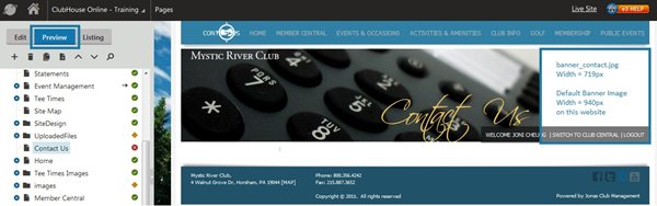 Some websites have been designed to have a default banner image placed at the top of every page of their website. The banner image can be placed either below or above the navigation bar. This section will guide you in determining the specific banner size designed for your website, how to select the correct page template and of course how to replace the banner image. In this example it is placed below.