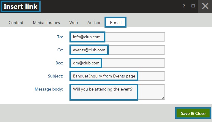 Hyperlinks can be used to link users visiting the website from one page to another page of information. This allows the administrator to save time and also make things easier for users to access information. There are a couple of ways that the hyperlink can be created; to an external (3rd party) website, to an internal page, to a document (PDF, WORD, EXCEL), to an email address and to an anchor (jumping to a different section within a page). The Hyperlink can be the result of clicking on some text on the page or even an image (i.e. Facebook icon).