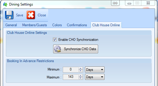 This section of Dining Settings controls the synchronization between Activity Management and ClubHouse Online.