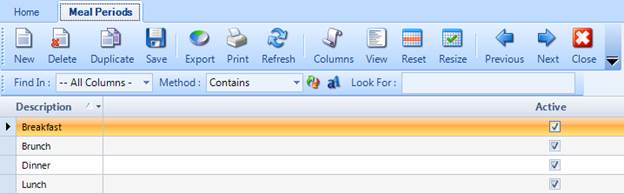 Specify the Starting Time and Ending Time which the Meal Periods will be available.
