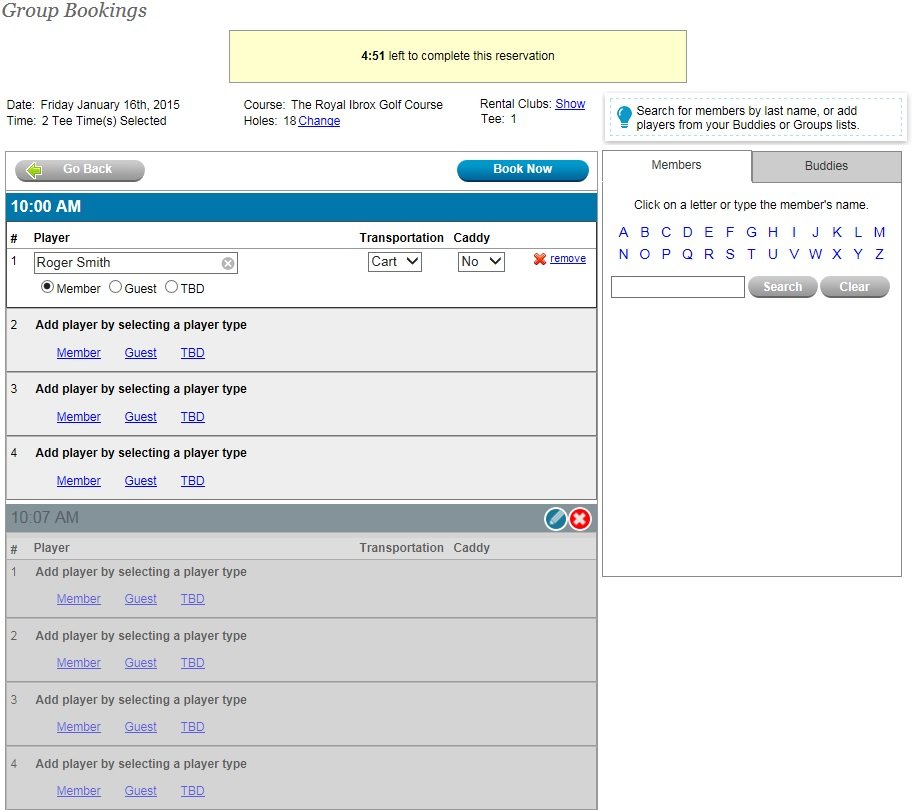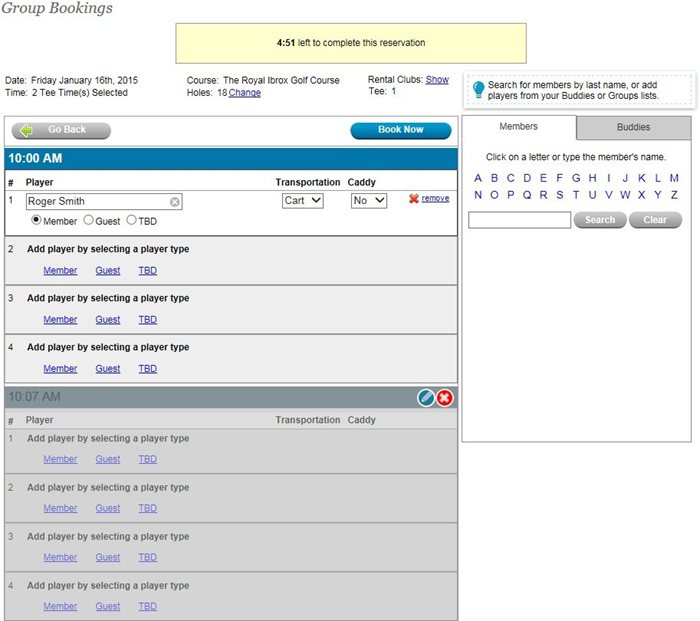 Buddies and Groups allows users to create a list of favorite individual members, guests, or a mixed group of members and guests that can be added to a booking quickly and easily. When making a booking, instead of searching for other players, users can click on Buddies to access a list of favorite members and guests.
