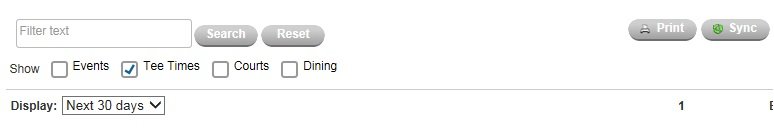 A user can access their bookings for any applicable module by the My Bookings tab displayed at the top of the module page. This includes Events, Court Bookings, Dining Reservations and Tee Times. By default, the My Bookings section in each Module will only display bookings associated with that specific Module. However, by selecting additional checkboxes, bookings from the selected module(s) will also display.