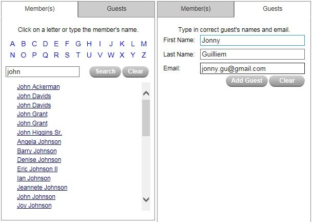 The My Bookings page will list all the user’s reservations and requests in chronological order and will display the confirmation number, any booking details, and the individual(s) assigned to the booking. If applicable, members can edit the reservation/registration by clicking on the Update Reg or cancel the reservation/registration by clicking Cancel.